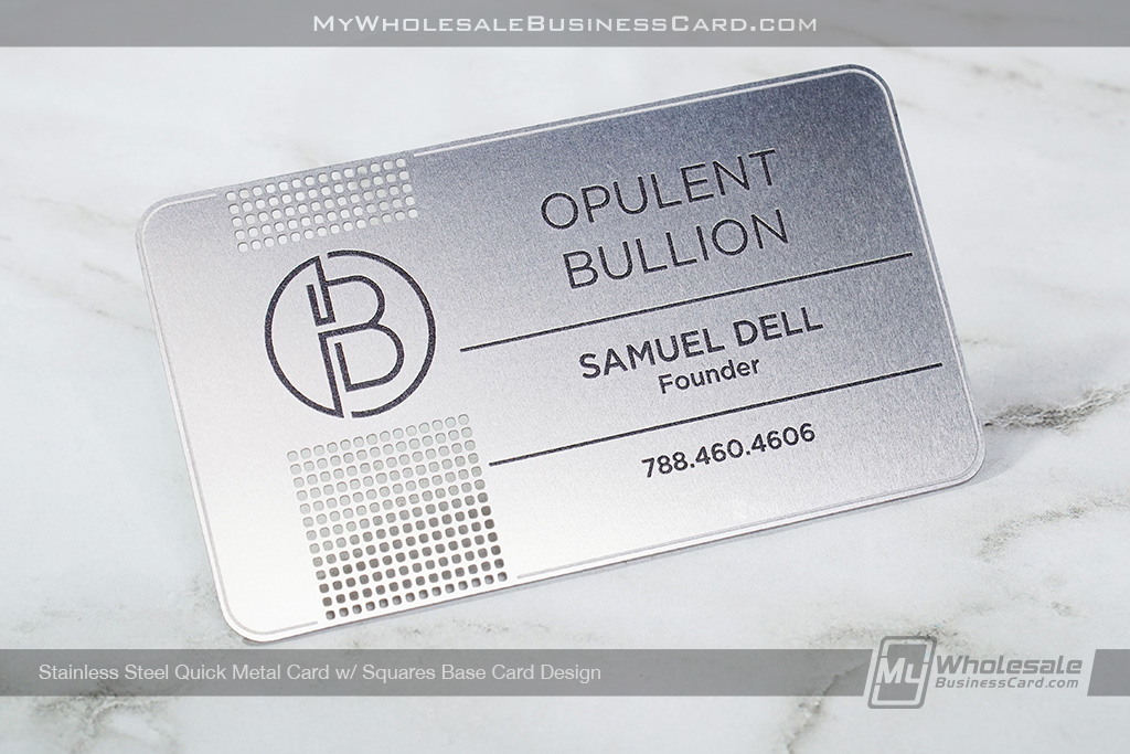 Stainless Quick Metal Cards - an industry first from My Wholesale Business Card - feature the same high quality .5mm stainless steel as our regular cards; with a few more limited customization options.